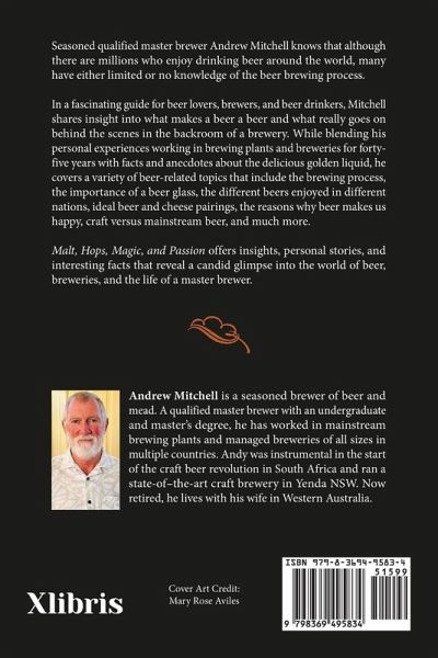 Seasoned qualified master brewer Andrew Mitchell knows that although there are millions who enjoy drinking beer around the world, many have either limited or no knowledge of the beer brewing process. In a fascinating guide for beer lovers, brewers, and beer drinkers, Mitchell shares insight into what makes a beer a beer and what really goes on behind the scenes in the backroom of a brewery. While blending his personal experiences working in brewing plants and breweries for forty-five years with facts and anecdotes about the delicious golden liquid, he covers a variety of beer-related topics that include the brewing process, the importance of a beer glass, the different beers enjoyed in different nations, ideal beer and cheese pairings, the reasons why beer makes us happy, craft versus mainstream beer, and much more. Malt, Hops, Magic, and Passion offers insights, personal stories, and interesting facts that reveal a candid glimpse into the world of beer, breweries, and the life of a master brewer.