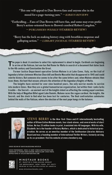 A deadly race for the Vatican's oldest secret fuels New York Times bestseller Steve Berry's next international Cotton Malone thriller: The Malta Exchange. "Berry is the master scientist with a perfect formula." -Associated Press The pope is dead. A conclave to select his replacement is about to begin. Cardinals are beginning to arrive at the Vatican, but one has fled Rome for Malta in search of a document that dates back to the 4th century and Constantine the Great. Former Justice Department operative Cotton Malone is at Lake Como, Italy, on the trail of legendary letters between Winston Churchill and Benito Mussolini that disappeared in 1945 and could re-write history. But someone else seems to be after the same letters and, when Malone obtains then loses them, the hunt that ensues attracts the attention of the legendary Knights of Malta. The knights have existed for over nine hundred years, the only warrior-monks to survive into modern times. Now they are a global humanitarian organization, but within their ranks lurks trouble - the Secreti - an ancient sect of the knights intent on affecting the coming papal conclave. With the help of Magellan Billet agent Luke Daniels, Malone races the rogue cardinal, the knights, the Secreti, and the clock to find what has been lost for centuries. The final confrontation culminates behind the walls of the Vatican, where the election of the next pope hangs in the balance.