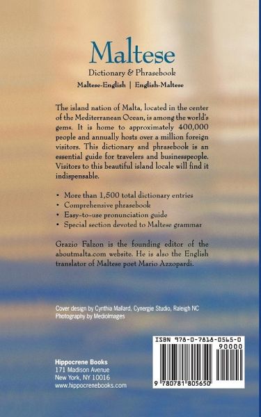 This pocket Maltese/English dictionary contains 1500 entries, providing an introduction to basic grammar in Maltese and a pronunciation guide. It also incorporates a Maltese phrasebook, which has all the information a visitor to Malta needs to know.