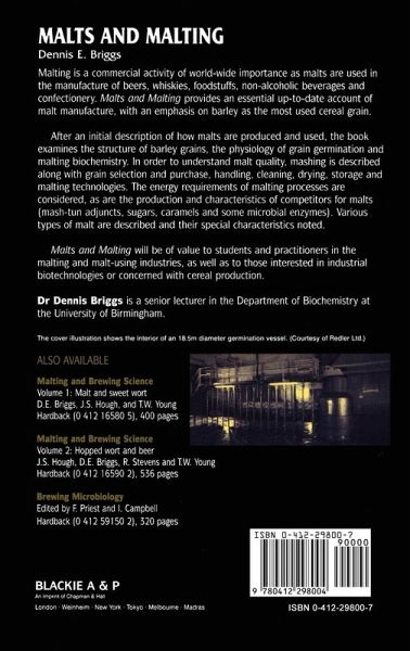 This book gives a comprehensive overview of malts and malt competitors, how they are made and evaluated. Summary-outlines of the malting process and malt-using processes are followed by consideration of the structures, germinative physiology and biochemistry of cereal grains. Particular attention is paid to barley, but the malting of other cereal is described. The successive stages of malting are then considered. Topics covered include the selection and purchase of grain, its evaluation and how it is handled and stored. The types of equipment used by maltsters are described and experimental malting techniques outlined. A section devoted to the production and characteristics of materials that compete with malts, including industrial enzymes, sugar preparations and mash-tun adjuncts. The principles of malt evaluation are explained, and the effect of altering malting conditions summarized. This book should be of direct value to maltsters, brewers, distillers, foodstuff manufacturers and other malt users as well as being of more general interest to food scientists and technologists in academic research institutions.