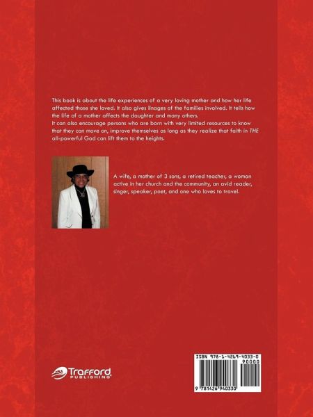 This book is about the life experiences of a very loving mother and how her life affected those she loved. It also gives linages of the families involved. It tells how the life of a mother affect the daughter and may others It can also encourage persons who are born in very limited resources to know they can move on, improve themselves as long as they realize that faith in all-powerful God can lift them to the heights