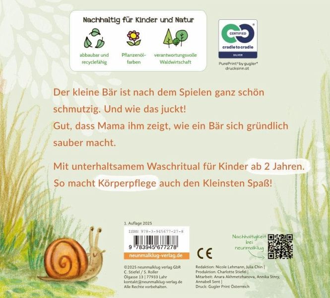 Wenn kleine Bären auf Entdeckungstour gehen, bleiben Blätter, Zweige und juckende Überraschungen nicht aus! Der kleine Bär hat den Tag im Grünen verbracht, ist auf Bäume geklettert und durch Hecken getollt - nun juckt sein Fell schrecklich. Mama Bär weiß sofort, was zu tun ist: Mit flinken Pfoten befreit sie ihn von Ranken und Zweigen, dann geht's ab ins kühle Nass! Gemeinsam planschen und schrubben sie, bis das Jucken verschwindet. Danach folgt der beste Teil: Am Lieblingsbaum schubbern und kuscheln, bis beide zufrieden seufzen. Ein wunderbares Vorlesebuch für Eltern, die ihren Kindern spielerisch die Freude an Körperpflege und Naturerlebnissen nahebringen möchten. Die einfachen Reime und die liebevolle Mutter-Kind-Beziehung machen dieses Buch zum perfekten Begleiter für die Gute-Nacht-Routine mit Kindern im Vorschulalter.