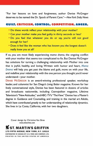 Guilt. Criticism. Control. Competition. Anger. If these words reflect your relationship with your mother, then Mama Drama can give you the tools to free yourself from the binds of an unhealthy mother/daughter relationship. A woman's relationship with her mother is often the most complex, emotionally dramatic, and volatile one of her life. It is also one of the most important, as it affects everything from her career, to her health, her marriage, and her parenting skills. Drawing from her own experiences, as well as from those of other women, McGregor shows why there is so much dissatisfaction in mother/daughter relationships, and gives practical methods for healing.