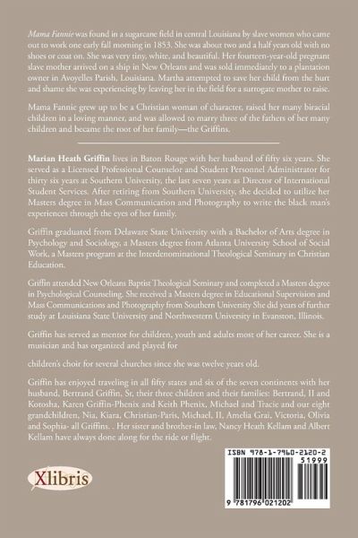 Mama Fannie was found in a sugarcane field in central Louisiana by slave women who came out to work one early fall morning in 1853. She was about two and a half years old with no shoes or coat on. She was very tiny, white, and beautiful. Her fourteen-year-old pregnant slave mother arrived on a ship in New Orleans and was sold immediately to a plantation owner in Avoyelles Parish, Louisiana. Martha attempted to save her child from the hurt and shame she was experiencing by leaving her in the field for a surrogate mother to raise. Mama Fannie grew up to be a Christian woman of character, raised her many biracial children in a loving manner, and was allowed to marry three of the fathers of her many children and became the root of her family-the Griffins.