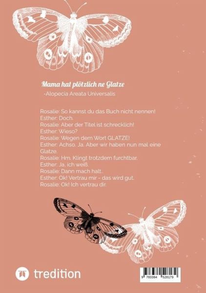 In dem Buch "Mama hat plötzlich ne Glatze" geht es um Alopecia Areata Universalis, auch bekannt als kreisrunder Haarausfall. Ein nicht wissenschaftlicher fundierter, aber sehr unterhaltsamer Erfahrungsbericht .