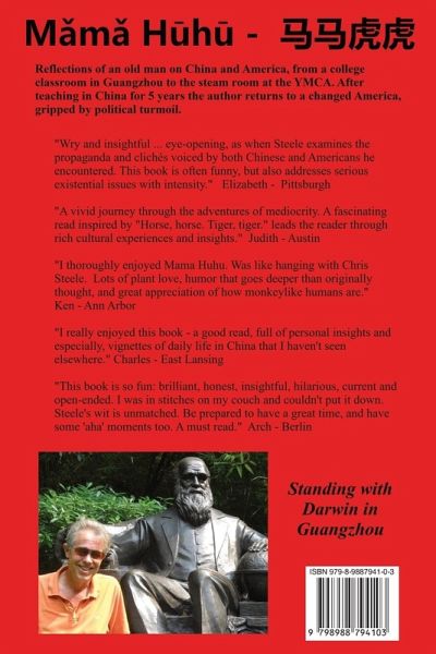 Reflections of an old man on China and America, from a college classroom in Guangzhou to the steam room at the YMCA in Lansing, Michigan. After teaching in China for 5 years the author returns to a changed America, gripped by political turmoil.