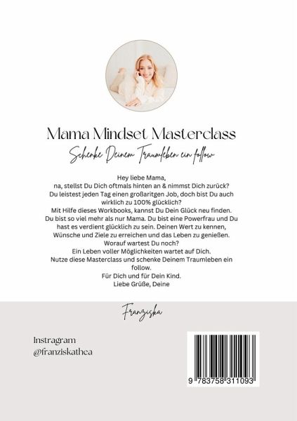 Hey liebe Mama,na, stellst Du Dich oftmals hinten an & nimmst Dich zurück?Du leistest jeden Tag einen großartigen Job, doch bist Du auch wirklich zu 100% glücklich?Mit Hilfe dieses Workbooks, kannst Du Dein Glück neu finden. Du bist so viel mehr als nur Mama. Du bist eine Powerfrau und Du hast es verdient glücklich zu sein. Deinen Wert zu kennen, Wünsche und Ziele zu erreichen und das Leben zu genießen. Worauf wartest Du noch?Ein Leben voller Möglichkeiten wartet auf Dich.Nutze diese Masterclass und schenke Deinem Traumleben ein follow. Für Dich und für Dein Kind.