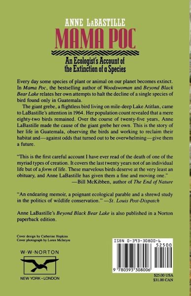 Every day some species of plant or animal on our planet becomes extinct. In Mama Poc, the bestselling author of Woodswoman and Beyond Black Bear Lake relates her own attempts to halt the decline of a single species of bird found only in Guatemala. The giant grebe, a flightless bird living on mile-deep Lake Atitlan, came to LaBastille's attention in 1964. Her population count revealed that a mere eighty-two birds remained. Over the course of twenty-five years, Anne LaBastille made the cause of the giant grebe her own. This is the story of her life in Guatemala, observing the birds and working to reclaim their habitat and-against odds that turned out to be overwhelming-give them a future.