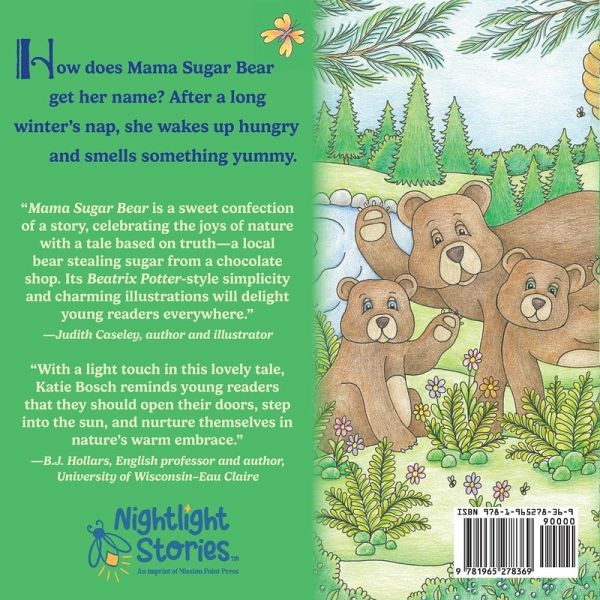 How does Mama Sugar Bear get her name? After a long winter's nap, she wakes up hungry and smells something yummy. In this charming tale inspired by a true story, Mama Sugar Bear and her two cubs become unlikely friends with a park ranger after Mama steals and devours a bag of sugar from a local chocolate shop. The ranger encourages the bears to explore Sleeping Bear National Lakeshore's natural bounty of berries, fish, and honey.