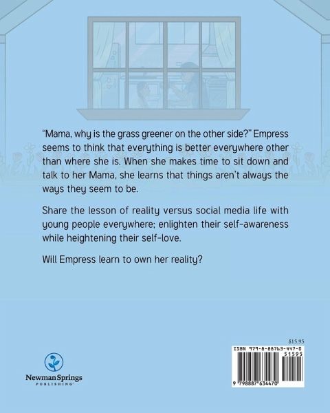 "Mama, why is the grass greener on the other side?" Empress seems to think that everything is better everywhere other than where she is. When she makes time to sit down and talk to her Mama, she learns that things aren't always the ways they seem to be. Share the lesson of reality versus social media life with young people everywhere; enlighten their self-awareness while heightening their self-love. Will Empress learn to own her reality?