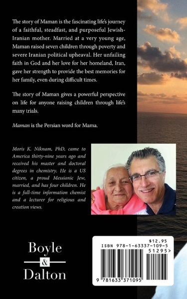 The story of Maman is the fascinating life’s journey of a faithful, steadfast, and purposeful Jewish-Iranian mother. Married at a very young age, Maman raised seven children through poverty and severe Iranian political upheaval. Her unfailing faith in God and her love for her homeland, Iran, gave her strength to provide the best memories for her family, even during difficult times. The story of Maman gives a powerful perspective on life for anyone raising children through life’s many trials. Maman is the Persian word for Mama.