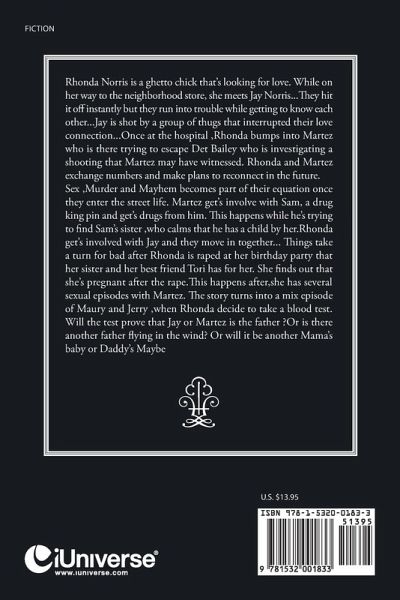 Rhonda Norris is a ghetto chick that’s looking for love. While on her way to the neighborhood store, she meets Jay Norris...They hit it off instantly but they run into trouble while getting to know each other...Jay is shot by a group of thugs that interrupted their love connection...Once at the hospital ,Rhonda bumps into Martez who is there trying to escape Det Bailey who is investigating a shooting that Martez may have witnessed. Rhonda and Martez exchange numbers and make plans to reconnect in the future. Sex ,Murder and Mayhem becomes part of their equation once they enter the street life. Martez get’s involve with Sam, a drug king pin and get’s drugs from him. This happens while he’s trying to find Sam’s sister ,who calms that he has a child by her.Rhonda get’s involved with Jay and they move in together... Things take a turn for bad after Rhonda is raped at her birthday party that her sister and her best friend Tori has for her. She finds out that she’s pregnant after the rape.This happens after,she has several sexual episodes with Martez. The story turns into a mix episode of Maury and Jerry ,when Rhonda decide to take a blood test. Will the test prove that Jay or Martez is the father ?Or is there another father flying in the wind? Or will it be another Mama’s baby or Daddy’s Maybe