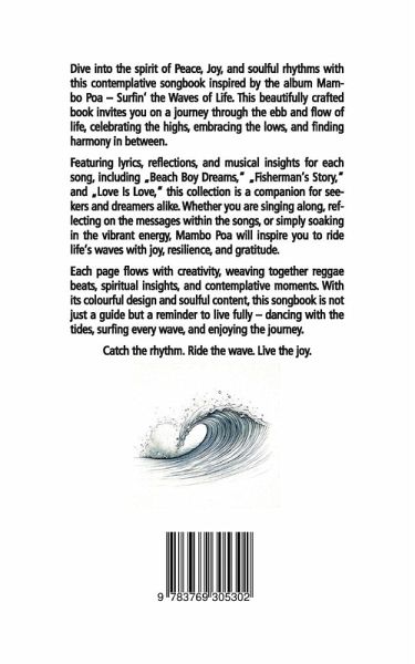 Dive into the spirit of Peace, Joy, and soulful rhythms with this contemplative songbook inspired by the album Mambo Poa - Surfin' the Waves of Life. This beautifully crafted book invites you on a journey through the ebb and flow of life, celebrating the highs, embracing the lows, and finding harmony in between. Featuring lyrics, reflections, and musical insights for each song, including "Beach Boy Dreams," "Fisherman's Story," and "Love Is Love," this collection is a companion for seekers and dreamers alike. Whether you are singing along, reflecting on the messages within the songs, or simply soaking in the vibrant energy, Mambo Poa will inspire you to ride life's waves with joy, resilience, and gratitude. Each page flows with creativity, weaving together reggae beats, spiritual insights, and contemplative moments. With its colourful design and soulful content, this songbook is not just a guide but a reminder to live fully - dancing with the tides, surfing every wave, and enjoying the journey. Catch the rhythm. Ride the wave. Live the joy.