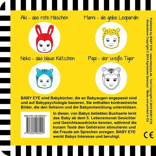 - Dieses und die restlichen BABY EYE Babybücher enthalten wiederkehrende Motive die Babys langsam mit der Zeit erkennen können.