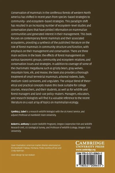 Emphasizing management and conservation, this book provides a synthesis of the literature on the role of forest mammals in community structure and function in the coniferous forests of western North America. In addition to coverage of some of the charismatic megafauna such as grizzly bears, gray wolves, mountain lions, elk and moose, it also includes small terrestrial mammals, arboreal rodents, bats, medium-sized carnivores, and ungulates. The unique blend of theoretical and practical concepts makes this volume equally suitable for managers, educators, and research biologists.
