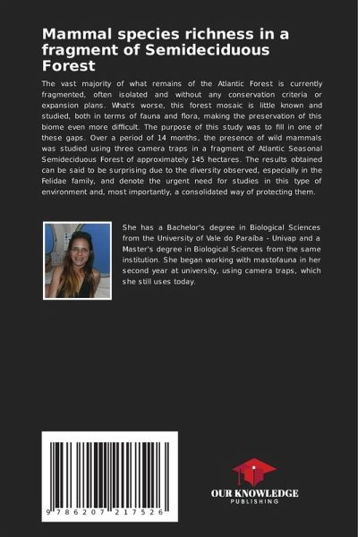 The vast majority of what remains of the Atlantic Forest is currently fragmented, often isolated and without any conservation criteria or expansion plans. What's worse, this forest mosaic is little known and studied, both in terms of fauna and flora, making the preservation of this biome even more difficult. The purpose of this study was to fill in one of these gaps. Over a period of 14 months, the presence of wild mammals was studied using three camera traps in a fragment of Atlantic Seasonal Semideciduous Forest of approximately 145 hectares. The results obtained can be said to be surprising due to the diversity observed, especially in the Felidae family, and denote the urgent need for studies in this type of environment and, most importantly, a consolidated way of protecting them.