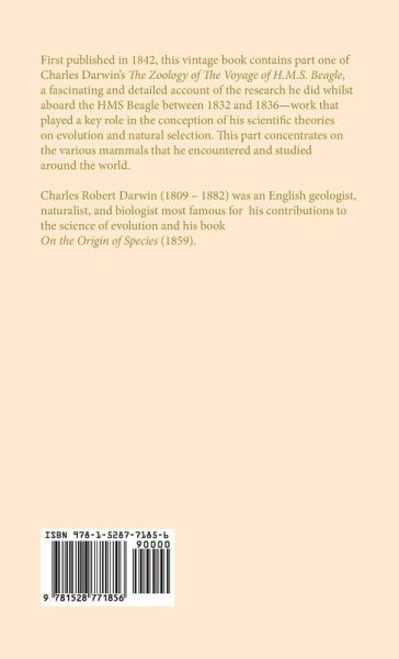 This volume is the definitive record of the living mammals collected by Charles Darwin during his historic five-year circumnavigation aboard H.M.S. Beagle (1832-1836). Part II ;of the comprehensive Zoology series, Mammalia provides a meticulous account of the species encountered and preserved, primarily from the remote coastlines and interior territories of South America. It features detailed scientific descriptions and classifications of bats, carnivores, and an array of South American rodents, including species new to science. Crucially, Charles Darwin himself contributes the vital contextual material, including a geographical introduction to the collection sites and extensive "Notices of their Habits and Ranges." These firsthand field observations offer unparalleled insights into the behavior and distribution of these creatures in their native habitats. Contents include: * Phyllostomidae * Phyllostoma Grayi * Phyllostoma Perspicillatum * Vespertilionidae * Noctilionidae * Carnivora * Canis Magellanicus * Felis Pajoros, etc. The remarkable biodiversity documented in these pages fueled Darwin's early thinking on evolution and geographical succession, making this a pivotal primary source for understanding the development of his revolutionary theories. A must-have for historians of science and naturalists.