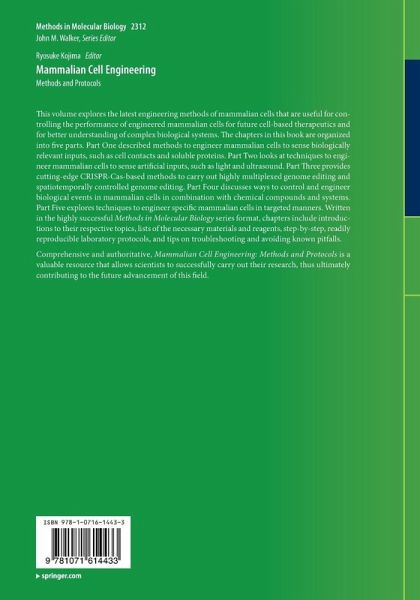 This volume explores the latest engineering methods of mammalian cells that are useful for controlling the performance of engineered mammalian cells for future cell-based therapeutics and for better understanding of complex biological systems. The chapters in this book are organized into five parts. Part One described methods to engineer mammalian cells to sense biologically relevant inputs, such as cell contacts and soluble proteins. Part Two looks at techniques to engineer mammalian cells to sense artificial inputs, such as light and ultrasound. Part Three provides cutting-edge CRISPR-Cas-based methods to carry out highly multiplexed genome editing and spatiotemporally controlled genome editing. Part Four discusses ways to control and engineer biological events in mammalian cells in combination with chemical compounds and systems. Part Five explores techniques to engineer specific mammalian cells in targeted manners. Written in the highly successful Methods in Molecular Biologyseries format, chapters include introductions to their respective topics, lists of the necessary materials and reagents, step-by-step, readily reproducible laboratory protocols, and tips on troubleshooting and avoiding known pitfalls.