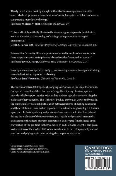This interdisciplinary work will appeal to reproductive biologists, behavioural ecologists and mammalogists with special interests in evolutionary biology and sexual selection. It provides a valuable resource for graduate students and for lecturers who design university courses, as well as established researchers.