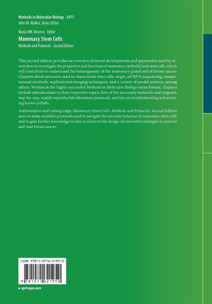 Authoritative and cutting-edge, Mammary Stem Cells: Methods and Protocols, Second Edition aims to make available protocols used to navigate the intricate behavior of mammary stem cells and to gain further knowledge to take us closer to the design of innovative strategies to prevent and treat breast cancer.