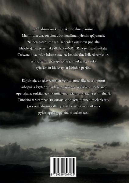 Kapitalismi on kulttiuskonto ilman armoa. Mammona taas on aina ollut maailman yleisin epäjumala. Näiden aatehistoriaan jääneiden ajatusten pohjalta kirjoittaja katselee nykyaikaista työelämää ja sen vaatimuksia. Tarkastelu viettelee lukijan mielen katedraalin kellarikerroksiin, sen varjoisille takapihoille ja sivukujille - sekä työelämän kiellettyjen kirjojen pariin.