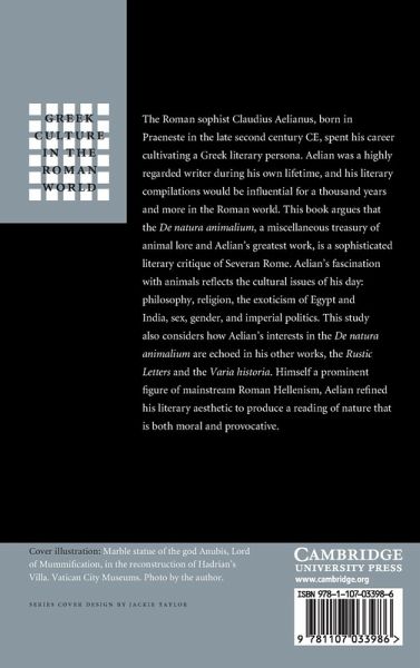 This book argues that Aelian's important work on animals, the De natura animalium, represents a sophisticated literary critique of Severan Rome. His fascination with animals reflects the cultural issues of his day: philosophy, religion, the exoticism of Egypt and India, sex, gender, and imperial politics.