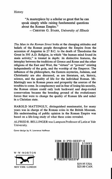This book looks at the changing attitudes and beliefs of the Roman people throughout the Empire from the accession of Augustus in 27 B.C. to the death of Theodosius the Great in 395 A.D. Religion, in which 'the human mind found its main activity, ' is treated in depth: its distinctive features, the interplay between the traditions of Greece and Roman and the other religions of the East and West, the 'virtues' or 'powers' existing independently of the gods, and the worship of the Emperor. The influence of the philosophers, the Eastern mysteries, Judaism, and Christianity are also discussed, as are literature, art, history, science, and the quality of life for the individual Roman.