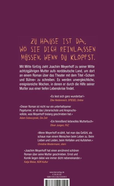Mit Mitte fünfzig zieht der Erzähler zu seiner Mitte achtzigjährigen Mutter aufs Land, um dort an einem Roman über das Theater mit dem Titel »Scham und Bühne« zu schreiben. Es werden unvergleichliche, ereignisreiche Wochen, in denen er durch die Hilfe seiner Mutter aus einer tiefen Lebenskrise findet.