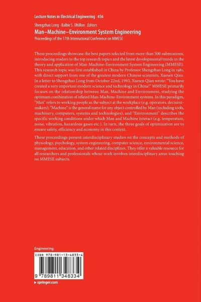 These proceedings showcase the best papers selected from more than 500 submissions, introducing readers to the top research topics and the latest developmental trends in the theory and application of Man-Machine-Environment System Engineering (MMESE). This research topic was first established in China by Professor Shengzhao Long in 1981, with direct support from one of the greatest modern Chinese scientists, Xuesen Qian. In a letter to Shengzhao Long from October 22nd, 1993, Xuesen Qian wrote: "You have created a very important modern science and technology in China!" MMESE primarily focuses on the relationship between Man, Machine and Environment, studying the optimum combination of related Man-Machine-Environment systems. In this paradigm, "Man" refers to working people as the subject at the workplace (e.g. operators, decision-makers); "Machine" is the general name for any object controlled by Man (including tools, machinery, computers, systems and technologies), and "Environment" describes the specific working conditions under which Man and Machine interact (e.g. temperature, noise, vibration, hazardous gases etc.). In turn, the three goals of optimization are to ensure safety, efficiency and economy in this context.