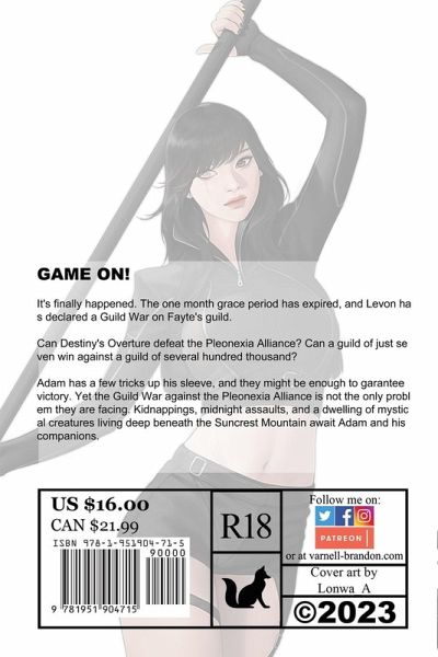 GAME ON! It's finally happened. The one month grace period has expired, and Levon has declared a Guild War on Fayte's guild. Can Destiny's Overture defeat the Pleonexia Alliance? Can a guild of just seven win against a guild of several hundred thousand? Adam has a few tricks up his sleeve, and they might be enough to garantee victory. Yet the Guild War against the Pleonexia Alliance is not the only problem they are facing. Kidnappings, midnight assaults, and a dwelling of mystical creatures living deep beneath the Suncrest Mountain await Adam and his companions.