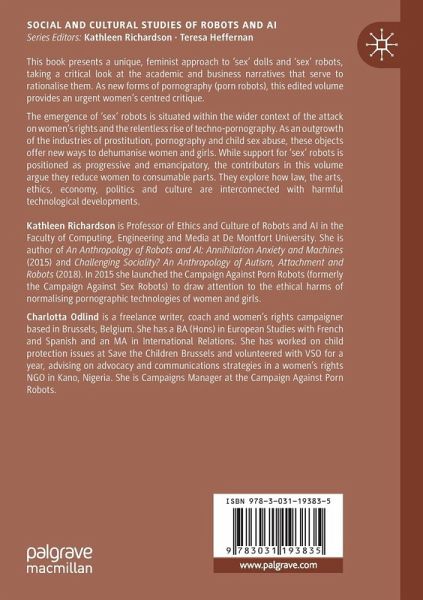 1. Introduction: The end of sex robots - for the dignity of women and girls.- 2. Modern-Day Pygmalions - Reproducing the Patriarchy.- 3. Mapping the uses of 'sex' dolls: pornographic content, doll brothels and the similarities with rape.- 4. Fetishism and the Construction of Male Sexuality.- 5. Playthings and Corpses - Turning Women into Dead Body Objects.- 6. Patriarchal imaginaries beyond the human: 'Sex robots', fetish, and fantasy in the domination and control of women.- 7. Paedophilia, child sex abuse dolls and the male sex right: Challenging justifications for men's sexual access to children and child sexual abuse material.- 8. The Voice of the 'Sex Robot': From peep-show bucket to willing victim - the terrorism of women's speech.- 9. The End of Sex Robots: Porn Robots and Representational Technologies of Women and Girls.