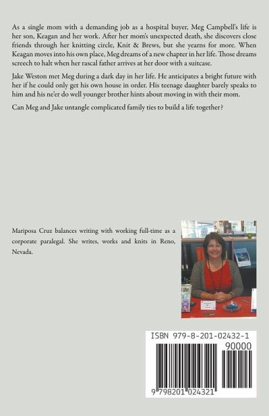 As a single mom with a demanding job as a hospital buyer, Meg Campbell's life is her son, Keagan and her work. After her mom's unexpected death, she discovers close friends through her knitting circle, Knit & Brews, but she yearns for more. When Keagan moves into his own place, Meg dreams of a new chapter in her life. Those dreams screech to halt when her rascal father arrives at her door with a suitcase. Jake Weston met Meg during a dark day in her life. He anticipates a bright future with her if he could only get his own house in order. His teenage daughter barely speaks to him and his ne'er do well younger brother hints about moving in with their mom. Can Meg and Jake untangle complicated family ties to build a life together?