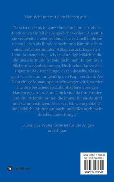 Tiara ist noch nicht ganz fünfzehn Jahre alt, als sie durch einen Unfall ihr Augenlicht verliert. Zuerst ist sie verzweifelt, aber sie findet sich schnell in ihrem neuen Leben als Blinde zurecht und kämpft sich in einen selbstbestimmten Alltag zurück. Begeistert lernt das neugierige, wissensdurstige Mädchen die Blindenschrift und ist bald nicht mehr hinter ihren Büchern wegzubekommen. Doch schon kurze Zeit später ist da dieser Junge, der in dieselbe Klasse geht wie sie und ihr gehörig den Kopf verdreht. Als Tiara einige Monate später schwanger wird, werden alle ihre bestehenden Zukunftspläne über den Haufen geworfen. Zum Glück sind da ihre Brüder und ihre Adoptivmutter, die immer für sie da sind und sie unterstützen. Aber was ist, wenn plötzlich ihre leibliche Mutter auftaucht und alles noch mehr durcheinanderbringt?