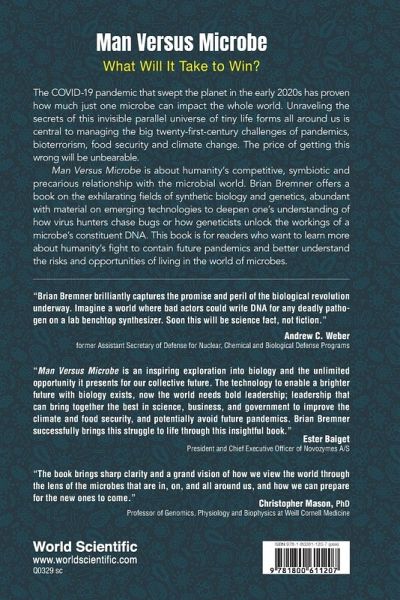 The COVID-19 pandemic that swept the planet in the early 2020s killed nearly six million, delivered unimaginable human suffering and $22 trillion in lost global growth. We weren't prepared and should have been. Unraveling the secrets of microbes, an invisible parallel universe of tiny life forms all around us, is central to managing the big twenty-first-century challenges of pandemics, bioterrorism, food security and climate change. Scientists, technologists, entrepreneurs and political leaders are racing to decode this biological realm with powerful new tools to extend human lifespans and make the world safer and more prosperous. Yet such technologies need to be handled with care. The price of getting this wrong will be unbearable. Man Versus Microbe is about humanity's competitive, symbiotic and precarious relationship with the microbial world. Brian Bremner (Senior Executive Editor, Bloomberg) offers a book on the exhilarating fields of synthetic biology and genetics, abundant with material on emerging technologies to deepen one's understanding of how virus hunters chase bugs or how geneticists unlock the workings of a microbe's constituent DNA. This book is for readers who want to learn more about humanity's fight to contain future pandemics and better understand the risks and opportunities of living in the world of microbes. After navigating through a disruptive pandemic, we are all amateur epidemiologists now.