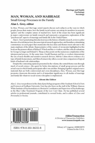 In "Man, Woman and Marriage", noted experts discuss such subjects as the ways in which people choose their mates, how the family social system can entrap its members in neurotic "games," and the complex nature of marital love. Each of the essays has been significant in major controversies on family research and represents a progressive exploration of the "psychosocial" aspects of marriage and family life in the United States.Alan L. Grey's penetrating Introduction traces the history of family research, reviews earlier theories of social interaction, discusses typical research approaches, and furnishes a stimulating commentary on each paper that enumerates the key ideas and themes most relevant to the main emphasis of the debate. Representative of the variety of viewpoints highlighted in this book are the pioneer efforts of Robert F. Winch and his co-workers, and the critical evaluations by George Levinger and Roland G. Tharp as they point out the numerous complexities of the interpersonal process. At the same time, Gerald Bauman and his co-workers demonstrate the use of more flexible and sensitive research devices, Melvin Cohen shows evidence of a type of family homeostasis, and Mirra Komarovsky offers a social-class comparison of typical kinds of husband-wife relationships.Despite the contrasting opinion presented in the volume, the central theme runs through much of social science - the quest for better descriptions of small group process and the actual ways in which family participants affect one another. Bringing together original source materials that are both controversial and cross-disciplinary, "Man, Woman, and Marriage" promotes classroom discussion and is of immediate significance to all studies of marriage and family life whatever social-science discipline is emphasized.