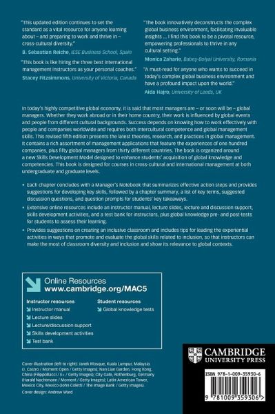 Preface Part I. Foundational Skills for Global Managers: 1. Global managers in a changing world 2. Developing global management skills Part II. Contextual Skills for Global Managers: 3. Cultural environments 4. Organizational environments 5. Managerial work environments Part III. Relationship-building skills for global managers: 6. Leading people and organizations 7. Communicating across cultures 8. Managing responsibly 9. Negotiating global agreements 10. Managing global teams 11. Working and living globally 12. Lessons learned: a review Appendix: National cultural models Name and organization index Subject index.