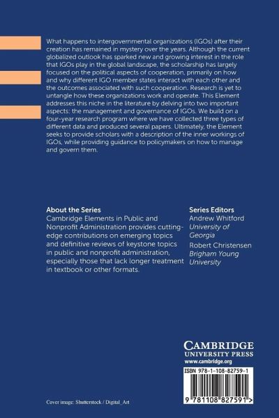 What happens to intergovernmental organizations (IGOs) after their creation has remained in mystery over the years. Research is yet to untangle how these organizations work and operate. This Element addresses this niche in the literature by delving into two important aspects: the management and governance of IGOs.
