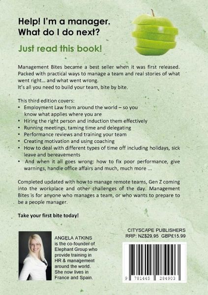 Management Bites is packed with practical ways to manage a team and real stories of what went right... and what went wrong. With employment law, tools and techniques, it's all you need to build your team, bite by bite. Written by best-selling author Angela Atkins and now in it's third edition.