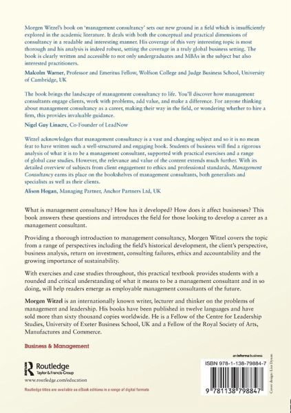 What is management consultancy? How has it developed? How does it affect businesses? This book answers these questions and introduces the field for those looking to develop a career as a management consultant. Providing a thorough introduction to management consultancy, Morgen Witzel covers the topic from a range of perspectives including the field's historical development, the client's perspective, business analysis, return on investment, consulting failures, ethics and accountability and the growing importance of sustainability. With exercises and case studies throughout, this practical textbook provides students with a rounded and critical understanding of what it means to be a management consultant and in so doing, will help readers emerge as employable management consultants of the future.
