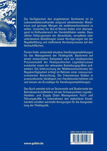 Florian Hofer entwickelt situative Handlungsempfehlungen für das Management der Filiallogistik. Basierend auf einem entwickelten Zielsystem wird ein idealtypisches Prozessmodell der filialspezifischen Logistikprozesse erarbeitet sowie die relevanten Gestaltungsgrößen präsentiert. Die Untersuchung der Wettbewerbsrelevanz der Regalverfügbarkeit erfolgt im Rahmen einer ressourcenorientierten Betrachtung. Die Erkenntnisse fließen in praxisrelevante Idealtypen von Handelsunternehmen ein und dienen als Grundlage für Handlungsempfehlungen.