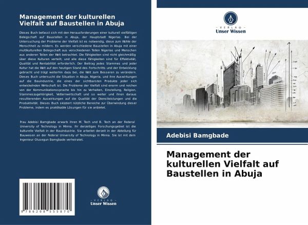 Dieses Buch befasst sich mit den Herausforderungen einer kulturell vielfältigen Belegschaft auf Baustellen in Abuja, der Hauptstadt Nigerias. Bei der Untersuchung der Probleme der Vielfalt ist es notwendig, diese zum Wohle der Menschheit zu mildern. Es werden verschiedene Baustellen in Abuja mit einer multikulturellen Belegschaft aus verschiedenen Teilen Nigerias und Menschen aus anderen Teilen der Welt betrachtet. Die Fähigkeiten sind nicht gleichmäßig über diese Kulturen verteilt, und alle diese Fähigkeiten sind für Effektivität, Qualität und Rentabilität erforderlich. Der Beitrag jedes Stammes und jeder Kultur hat die Welt auf den heutigen Stand des Fortschritts und der Entwicklung gebracht und trägt weiterhin dazu bei, die Welt zum Besseren zu verändern. Dieses Buch untersucht die Situation in Abuja, Nigeria, und ihre Auswirkungen auf die Bauindustrie, die eines der sichtbarsten Produkte jeder sich entwickelnden Wirtschaft ist. Die Probleme der Vielfalt sind enorm und reichenvon der Kommunikationssprache bis hin zu Verhalten, Einstellung, Religion, Stammeszugehörigkeit, Vetternwirtschaft und so weiter und ihren daraus resultierenden Auswirkungen auf die Qualität der Dienstleistungen und die Produktivität. Dieses Buch skizziert nützliche Bereiche zur Überwindung dieser Probleme, indem es praktikable Lösungen für sie anbietet.