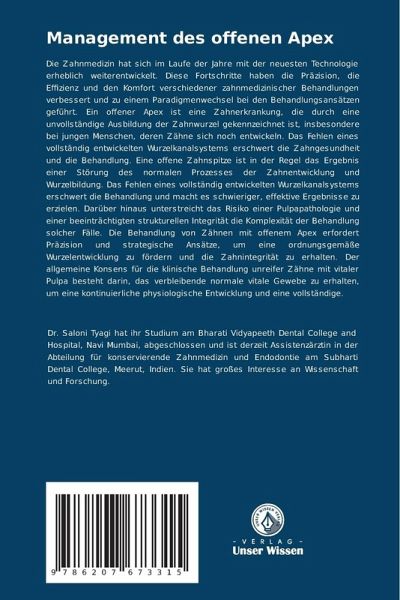 Die Zahnmedizin hat sich im Laufe der Jahre mit der neuesten Technologie erheblich weiterentwickelt. Diese Fortschritte haben die Präzision, die Effizienz und den Komfort verschiedener zahnmedizinischer Behandlungen verbessert und zu einem Paradigmenwechsel bei den Behandlungsansätzen geführt. Ein offener Apex ist eine Zahnerkrankung, die durch eine unvollständige Ausbildung der Zahnwurzel gekennzeichnet ist, insbesondere bei jungen Menschen, deren Zähne sich noch entwickeln. Das Fehlen eines vollständig entwickelten Wurzelkanalsystems erschwert die Zahngesundheit und die Behandlung. Eine offene Zahnspitze ist in der Regel das Ergebnis einer Störung des normalen Prozesses der Zahnentwicklung und Wurzelbildung. Das Fehlen eines vollständig entwickelten Wurzelkanalsystems erschwert die Behandlung und macht es schwieriger, effektive Ergebnisse zu erzielen. Darüber hinaus unterstreicht das Risiko einer Pulpapathologie und einer beeinträchtigten strukturellen Integrität die Komplexität der Behandlung solcher Fälle. Die Behandlung von Zähnen mit offenem Apex erfordert Präzision und strategische Ansätze, um eine ordnungsgemäße Wurzelentwicklung zu fördern und die Zahnintegrität zu erhalten. Der allgemeine Konsens für die klinische Behandlung unreifer Zähne mit vitaler Pulpa besteht darin, das verbleibende normale vitale Gewebe zu erhalten, um eine kontinuierliche physiologische Entwicklung und eine vollständige.