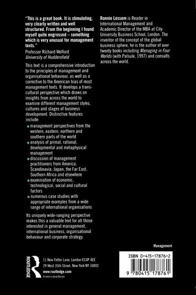 This stimulating, clearly written and well-structured text is a comprehensive introduction to the principles of management and organizational behavior, as well as a corrective to the Eurocentric bias of most management texts. This book focuses on four domains of management--primal, rational, developmental and metaphysical. It develops a transcultural perspective drawing on insights from across the world to examine different management styles, cultures and stages of business development. Each section examines core management theory and literature, cultural orientation and related prominent theories. The numerous case studies are drawn from America, Scandinavia, Japan, the Far East, Southern Africa and elsewhere. This is a substantially revised and updated version of Ronnie Lessem's acclaimed book "Global Management" "Principles" (1989), using three-quarters new material.