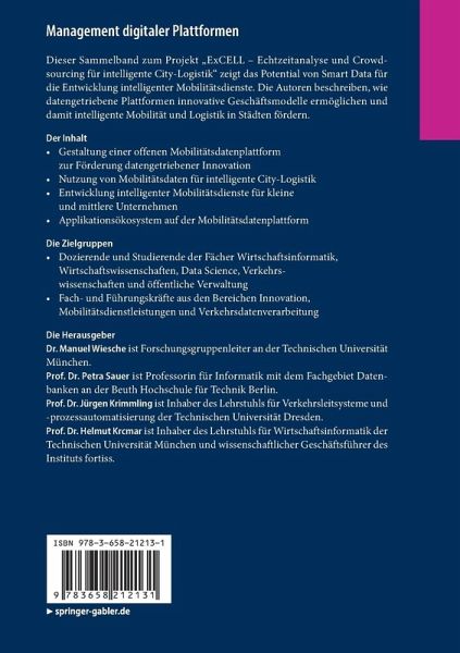 Gestaltung einer offenen Mobilitätsdatenplattform zur Förderung datengetriebener Innovation.- Nutzung von Mobilitätsdaten für intelligente City-Logistik.- Entwicklung intelligenter Mobilitätsdienste für kleine und mittlere Unternehmen.- Applikationsökosystem auf der Mobilitätsdatenplattform.