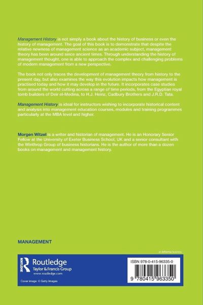 Management History is not simply a book about the history of business or even the history of management. The goal of this book is to demonstrate that despite the relative newness of management science as an academic subject, management has been around since ancient times. Through understanding the history of management - both in practice and theory - one is able to approach the complex and challenging problems of modern management from a new perspective. The book not only traces the development of management from history to the present day, but also examines the way this evolution impacts how management is practiced today and how it may develop in the future. It incorporates case studies from around the world cutting across a range of time periods, from the Egyptian royal tomb builders of Deir el-Medina, to H.J. Heinz, Cadbury Brothers and Tata Steel. Management History is ideal for instructors wishing to incorporate historical content and analysis into management education courses, modules, and training programs, particularly at the MBA level and higher.