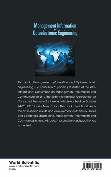 This book, Management Information and Optoelectronic Engineering, is a collection of papers presented at the 2015 International Conference on Management, Information and Communication and the 2015 International Conference on Optics and Electronics Engineering which was held on October 24–25, 2015 in Xia Men, China. The book provides state-of-the-art research results and development activities in Optics and Electronics Engineering, Management, Information and Communication and will benefit researchers and practitioners in the field.