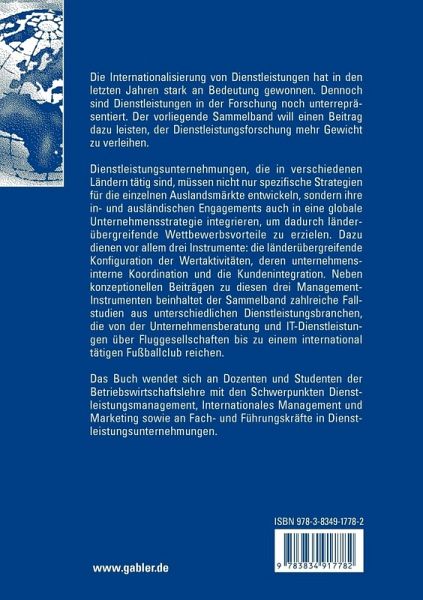 Die Internationalisierung von Dienstleistungen hat in den letzten Jahren stark an Bedeutung gewonnen. Dennoch sind Dienstleistungen in der Forschung noch unterrepräsentiert. Der vorliegende Sammelband will einen Beitrag dazu leisten, der Dienstleistungsforschung mehr Gewicht zu verleihen.