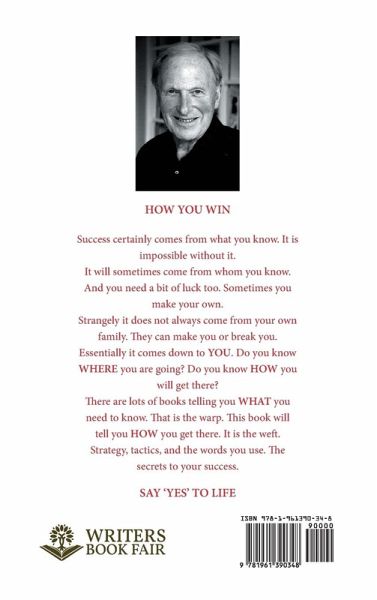 HOW YOU WIN Success certainly comes from what you know. It is impossible without it. It will sometimes come from whom you know. And you need a bit of luck too. Sometimes you make your own. Strangely it does not always come from your own family. They can make you or break you. Essentially it comes down to YOU. Do you know WHERE you are going? Do you know HOW you will get there? There are lots of books telling you WHAT you need to know. That is the warp. This book will tell you HOW you get there. It is the weft. Strategy, tactics, and the words you use. The secrets to your success. SAY 'YES' TO LIFE