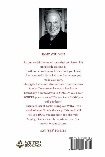 HOW YOU WIN Success certainly comes from what you know. It is impossible without it. It will sometimes come from whom you know. And you need a bit of luck too. Sometimes you make your own. Strangely it does not always come from your own family. They can make you or break you. Essentially it comes down to YOU. Do you know WHERE you are going? Do you know HOW you will get there? There are lots of books telling you WHAT you need to know. That is the warp. This book will tell you HOW you get there. It is the weft. Strategy, tactics, and the words you use. The secrets to your success. SAY 'YES' TO LIFE