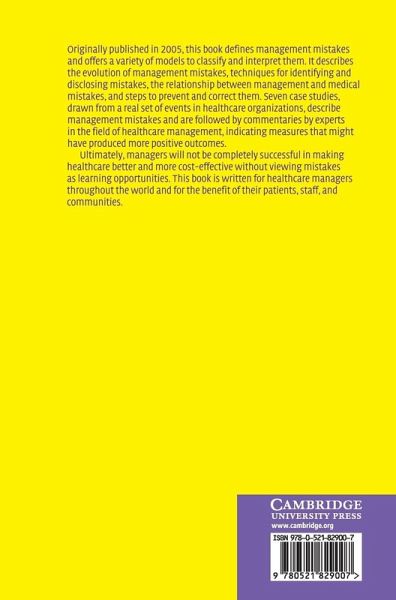 This book defines management mistakes and offers a variety of models to classify and interpret them. It describes the evolution of management mistakes, techniques for identifying and disclosing mistakes, the relationship between management and medical mistakes, and steps to prevent and correct mistakes. Six case studies, drawn from a real set of events in healthcare organizations, describe management mistakes and are followed by commentaries by experts in the field of healthcare management. They indicate steps that might have produced more positive outcomes. Ultimately, managers will not be completely successful in making healthcare better and more cost-effective without viewing mistakes as learning opportunities. This book is written for healthcare managers throughout the world and for the benefit of their patients, staff and communities.